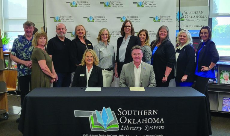 The leadership and staff of Murray State College and the Southern Oklahoma Library System came together at the Champion Public Library on Tuesday to sign an agreement allowing the college’s students access to the library’s many available resources. In addition to in-person facilities such as study rooms and computers, students will also be able to access online recourses such as tutoring and the EBSCOhost database which will give them access to academic resources for writing papers.